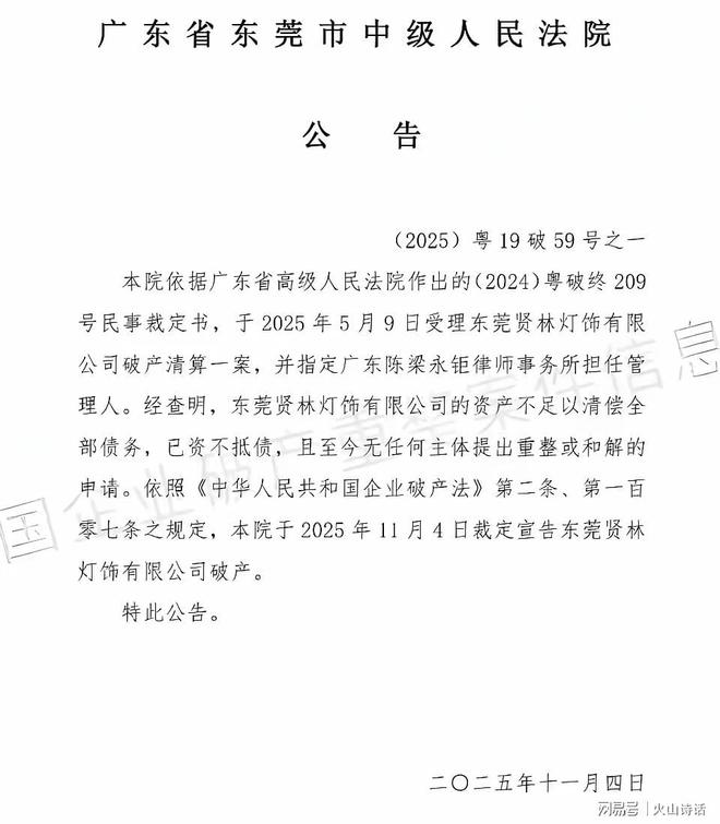 近日,广东省东莞市一家经营了30年的老牌灯饰生产企业像大楼一样倒塌了。网上引起关注。 2025年11月4日,东莞市中级人民法院正式裁定宣告东莞市仙林照明有限公司破产。这家拥有30多年历史的老牌灯饰制造商最终陷入了沉重的债务,正式结束了在灯饰行业的发展。看看这个感人的广告。广东省东莞市中级人民法院发布(2025)粤法19号59-1号。 2025年5月9日,本院受理东莞多尔破产清算案。东莞仙林照明有限公司资产不足以清偿全部债务,已资不抵债。到目前为止,双方均未要求重组或和解。根据《中华人民共和国公司破产法》第二条、第一百零七条的规定,法院于2025年11月4日作出判决,宣告东莞市仙林照明有限公司破产。以下是公告。据2025年11月4日法院公开信息显示,东莞仙林照明破产有明确的事实依据。 2025年5月9日,法院应债权人请求,正式受理公司破产清算请求。经第三方资产评估机构核实确认,公司现有资产包括生产设备、厂房租赁权、存货、应收账款等,评估总价值为3120.53万元。该公司债务总额达2.21亿元,处于严重破产状态。更重要的是,该公司无法制定有效的债务偿还计划,因为从收到诉讼到申请破产的近六个月期间,投资者和债权人没有提出任何重组或清算请求。在恩d、法院依法判决该公司宣告破产。整个过程完全符合破产法的相关规定,不存在数据与法律程序之间的争议。公开资料显示,仙林照明成立于1995年12月,注册资本约1500万元,法定代表人为陈立峰先生。作为一家有着30年发展历程的公司,我们拥有员工近2000人,在行业中具有稳固的地位。是中国照明行业的知名企业。公司CELINA品牌在行业内具有较大影响力,在市场上建立了较强的影响力和美誉度。然而,市场趋势的变化是无情的。东莞仙林照明的消亡并不是一个特殊事件,而是现阶段照明行业发展的一个典型缩影。近几十年来,该行业普遍以电子化为基础“扩大产能、抢占渠道、打价格竞争”的扩张模式,导致中小型制造商数量迅速增加。目前,日本有超过2万家照明企业,其中80%以上集中在中低价市场。随着消费者的需求从“可得性”转向“好坏”,同质化产品泛滥的问题日益凸显。为了争夺市场份额,一些企业将产品利润压缩至5%以下,甚至形成激烈的“量价比”竞争。结合近期大宗商品价格(如铜、铝等金属价格)波动,物价涨幅超过20%,劳动力成本增加,国际贸易壁垒等外部压力加大。无论是仙林这样的老牌企业,还是新兴品牌,都在“存量游戏”中面临着严峻的挑战。自然的产业结构调整进程明显加快。 2024年,已有1000多家中小型照明企业停业或停止运营。据不完全统计,2025年将有多家知名企业破产,其中包括佛山伟晓照明、江门圣亮照明、中顺半导体照明、杭州银迪照明等。也就是说,在房地产衰退、成本上升、同质化竞争加剧等多重因素影响下,如今的照明行业正在经历一场残酷的重组。没有技术迭代和品牌溢价的企业将最先被淘汰。只有大胆创新、拓展海外市场,才能获得更多的市场和发展机会。您对此有何看法?