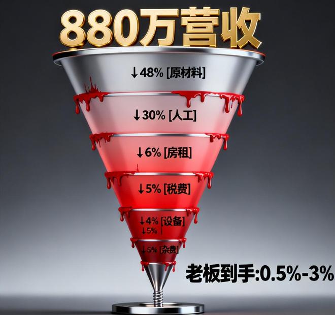 1. 撕下遮羞布:你老板的生活可能比你更糟糕。你见过凌晨4点的工厂吗?我见过,而且见过很多次。我提供管理咨询已有 12 年了,会见了超过 500 名中小企业主。每次吃饭,他们都拍着胸脯说:“这一年,我们的收入增加了几千万。”吃完晚饭,我带他们回家,他们还在计算员工这个月的工资。这群人是中国经济的“黄牛阶层”,是中小微企业主。让我们算一下,你就会明白。上周我一家硬件加工公司的老板来看我。年收入880万元。这听起来很误导,对吧?现在,让我们看一下账本。人员费用:员工32人,平均工资每月6000元,加上社会保障储备金,每年268万日元。厂房出租:东莞工业区,800平方米,每月28,000,每年336,000。原材料:钢铝成本,每年420万。设备折旧:数控机床3台,每年38万台。税金:增值税、所得税、杂项附加费,每年52万 其他杂费:水、电、物流、管理费、预扣罚款,每年28万 880万 - 268万 - 33.6万 - 420万 - 38万 - 52万 - 28万 = 404,000 是这个吗?利润40.4万?多么天真啊!客户尚欠120万,供应商正在等待付款,银行贷款利息尚未计算。最终,夫妻俩只拿到了不到12万元。你知道什么更痛吗?工厂里一位老数控操作工的提成超过15万,比他的老板还多。 2、利润去哪儿了?展示小boss的“出血曲线”“do”的图像。很多人认为老板就等于金钱。让我给你看一张照片 **[小型企业利润分布图]**:请问,哪个行业的净利润率只有0.5%?开超市的人比这更好。但这就是制造业小商人的真实生活处境,收入数千万美元,利润惨淡。更可怕的是,这还不包括任何隐性成本。账户期限成本:客户推迟付款 90 天,聘请高利贷者跟上,年化利息吃掉 5% 的利润。试错成本:如果一系列产品失败,返工费可以直接抹去三个月的利润。相关费用:消防检查、环保检查、税务检查……什么都没有,你想“孝顺”吗?那么钱去哪儿了呢?这些钱存在于员工的工资、业主的口袋、税务部门的账户和客户的债务中,但不存在于老板的钱包中。 3. 比没钱更糟糕的是:你的小老板“很有钱”。你觉得低亲吗适合是唯一的问题吗?错误!对于小企业主来说,最大的风险就是风险本身。 **【小企业主的风险图】** 让我告诉你:我有一个在电子商务供应链工作的学生。去年双十一他预订了200万。结果?平台突然改变规则,你就失去了你的产品。我应该怎么办? “我给房子挂了贝网,把老婆孩子送回了婆婆家,在仓库里睡了三个月,最后房子打折30%卖了,我还了贷款和供应商的钱,还欠38万。现在我是退伍军人了,但我不能坐高铁,我的孩子不能上私立学校……但我必须坚持下去,还有18个。”员工正在等待赔偿金。”这就是中国式老板的“无限责任”。公司是他的,债务是他的,责任是他的,甚至员工的生命也是他的。劳动法保护员工和企业社会法律规范企业,但谁来保护这个“人盾”呢? 4、4种救命方法:让小老板“止血”“造血”。好吧,我骂了他,哭了,说了一些实际的话。你的老板怎样才能过上更好的生活?我们整理了四种行之有效的方法论,每种方法论都有现实生活中的例子: 因为如何重组:把“固定工资”变成传统的“弹性分享”方式:员工领取死亡工资,干旱或洪水时收入有保障,雇主承担所有风险。新方式:底薪+盈余分红+产量/时间+项目监控投入 案例:杭州电商代理运营公司(20人) 转型前:月收入如下。员工平均固定工资60万元,每月人工成本16万元,利润率全年保持在5%,员工月薪2万元以下,底薪4000做改造后的拉尔斯。然而,超额表现将获得奖金(超额表现的 20% 将归团队所有)。转化率奖励以 1% 的增量添加。运营人员将公关利润的30%项目与数据(实施后6个月)进行比较:管理者节省的不是工资,而是行政成本和试错成本。 2:现金流储备——建立“90天生存基金” 90%的小企业倒闭不是因为没有盈利,而是因为缺乏现金流。案例:深圳SaaS软件公司(团队15人) 转型前:客户单价为3万元,但客户通常会延迟付款60-90天。该公司的永久现金不足 20 万美元。月薪12万元,租金2万元,服务器3万元。现金流缺口:每月净流出8万-10万元: 付款方式重组:新客户预付30%,余额将分两期支付。购买应收账款保险2万元,规避破产风险200万元。设立“生存基金”。每月将利润的 30% 作为押金。数据对比(一年后): 重点行动:现金流是企业的命脉,永远需要企业资本的10%。方法三:政策红利技巧:变“高价”为“补贴” 很多老板一听到“政策”二字就心烦意乱,认为这是给大公司的。但你不知道如何获得它。每年他们都会在防火、环保、税收等方面攻击我。我做到了。多次“教育”并罚款2万至3万元。我从来没想过会收到政府的钱。转型后(建立政策响应机制):专职人员和专职岗位:让行政人员每周花两个小时学习政府官方网站区年。积极的立场内容:申请“大学生创业补贴”(领取10万元) 合规改造:按照“辉煌厨灶”标准改造,获得食品安全奖5万元。优化社保:申请“稳定就业补贴”,每年返还7万元。税务筹划:申请小规模纳税人认定征收,每年节省税费9万元。数据对比(年度):一句话总结:政治不是负担,是隐性红利基金。花1万元聘请一位懂政策的顾问,一年至少可以节省10万元。方法四:风险墙:不要把公司破产变成“家庭崩溃”。以公司为家的老板太多了,钱好坏参半,风险也好坏参半。这是最致命的错误。例:东莞精密模具厂(年销售额1200万元) 变更前:boss的个人卡变成了公司卡,造成交易混